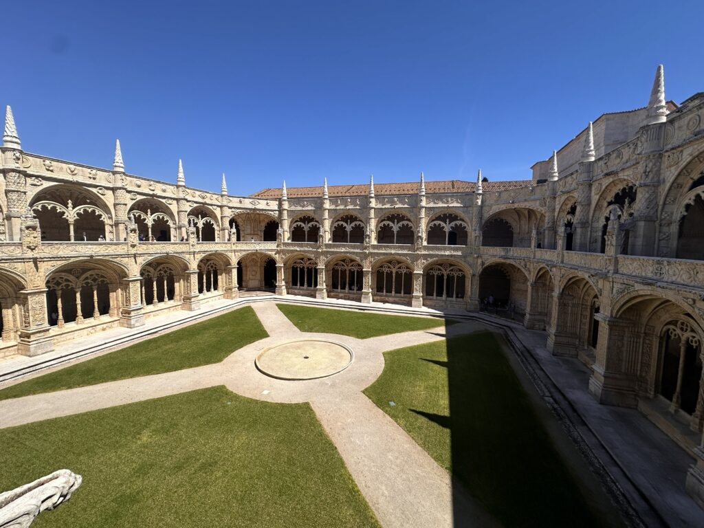 From there, we headed to Jerónimos Monastery, one of Lisbon’s most famous landmarks. Architecturally impressive and historically important, but also extremely crowded. I’m glad we experienced it, though it’s more about seeing it once than spending time lingering inside.